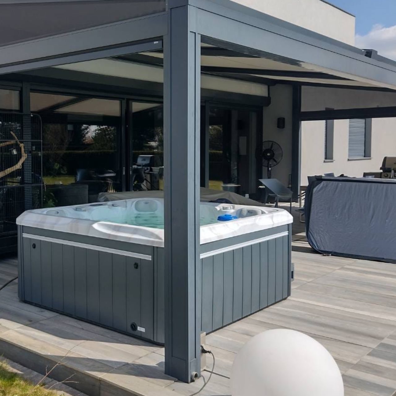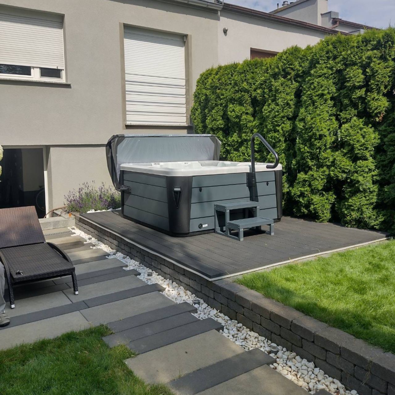 Our Eva garden SPA is the first product in Poland that uses an innovative triple insulation system. This solution guarantees perfect protection against water temperature drop, and also has a positive effect on reducing energy consumption during bathing. What's more, both the casing, pipes and the basin are made of durable acrylic, covered with a layer of glass fiber. This design ensures incredible durability of the hot tub and reliable operation throughout its life.